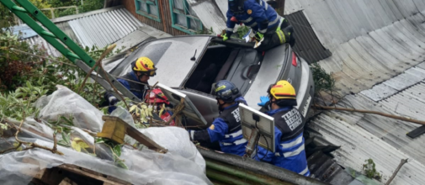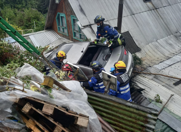 En el lugar y por razones que se investigan, el conductor perdió el control del móvil cayendo sobre el techo de una vivienda, según lo señaló el Comandante del Cuerpo de Bomberos de Chonchi, Rubén Vera: