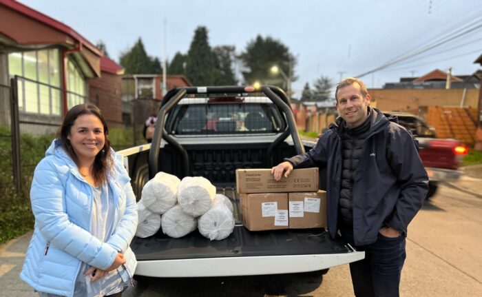 Por ello, Multi X a través de su Gerente de Sustentabilidad, Kevin Scherpenisse, entregó a la alcaldesa Javiera Yáñez, diversos insumos consistentes en mascarillas, guantes y pecheras, por medio de la coordinación de Salmonchile.