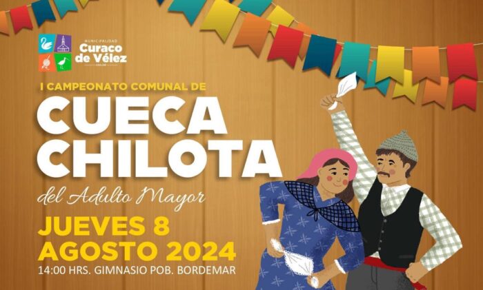 La Ilustre Municipalidad de Curaco de Vélez, a través de su alcaldesa Javera Yáñez Rebolledo, reitera la invitación a todas las personas mayores de 60 años de la comuna, para participar del “I CAMPEONATO COMUNAL DE CUECA CHILOTA DEL ADULTO MAYOR”, a realizarse el día jueves 8 de Agosto de 2024, a las 14 horas, en el Gimnasio Bordemar.